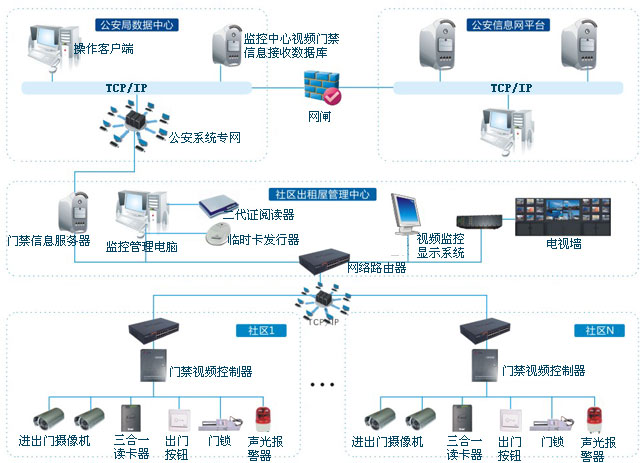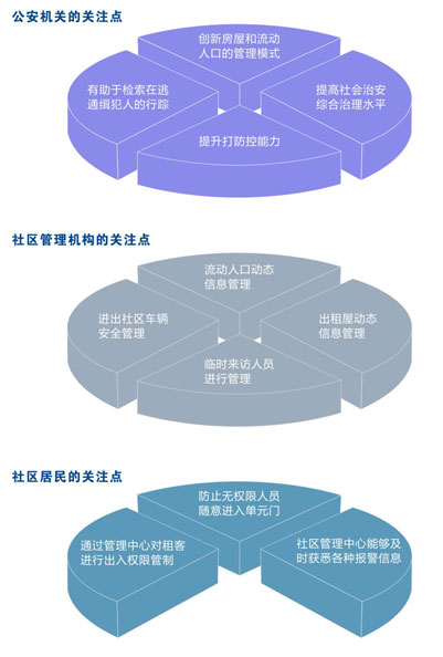 随着经济建设和社会建设等快速发展,外地流动人口在社区内租住的现象不断增多,社区人口趋于复杂。在诸多因素影响下,导致各类治安和刑事案件呈上升趋势。社区内公共安全形势面临着严峻的挑战。全国各级公安机关都在积极创新社区和流动人口的管理模式,部分先进的地市公安机关已完成社区综合管理平台及数据库建设,实现跨地区的信息共享,并有序的开展视频门禁、监控、报警系统的应用与推广。建立社区内房屋信息、居住人口信息、出入监控信息的协同使用机制,强化视频联动和门禁技术在公安侦查破案中支柱性作用,不断提高系统整体社区公共安全的监控水平。
