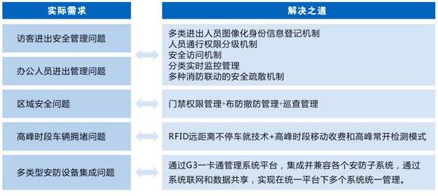 通过上述示意图可以看出,多个系统统一管理、上下班高峰期车辆便捷通行管理、临时访客管理、办公人员通行权限管理、财产安全管理成为捷顺应对办公楼宇一卡通管理的核心挑战。