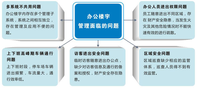商业楼宇不仅车流量大、人群高度集中、信息流通和传播量大、业务种类复杂、重要设施和档案资料集中的综合场所。结合当前商业楼宇的管理现状,有以下几方面问题急需解决:
