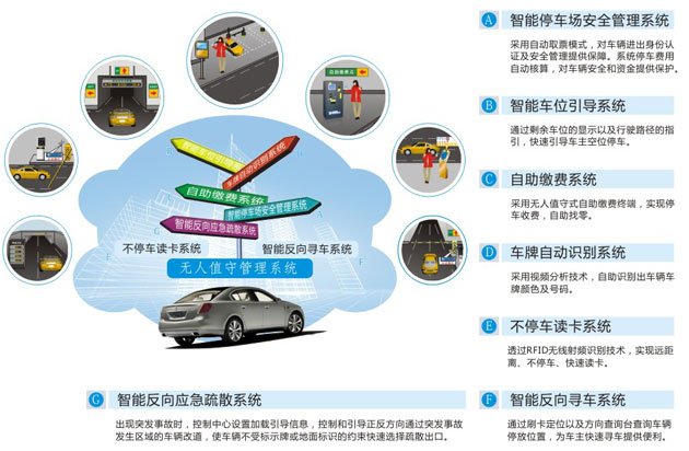 系统支持车辆入场自动读卡或取卡,并引导车辆到空位泊车,在自助缴费机上完成停车缴费及找零,最终通过读卡或自动回收卡离场。